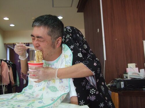 明けましておめでとうございます。 デイサービス藤の華です❣ 2022年を迎え、早いもので2週間が経ちました。 今年はじめてのイベントと言う事で... 『二人羽織』 調べてみると江戸時代からあった余興でもあるそうです。 さて上手に食べれるかな? 前の職員も後…