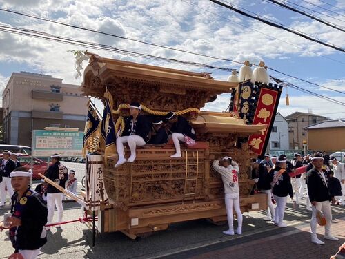 老健華入所です。 秋晴れの10月祭礼、西之内町のだんじりが老健華を訪問してくれました。 肌で感じる太鼓と迫力のある新調されただんじり! 入所者様代表から西之内町の町会長に花束贈呈。 入所者様も拍手喝采、楽しいひと時を過ごせました。