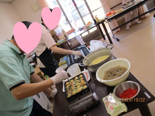 有料老人ホームコスモスの家田尻です。 今回は10/22に栄養科協力のもとたこ焼き、焼き鳥 フランクフルト、おにぎりの食レクを実施しました。 たこ焼きが大人気でたくさんの入居者様が おかわりをしてくださいました♪ 焼き鳥もフランクフルトもおにぎりも「お…