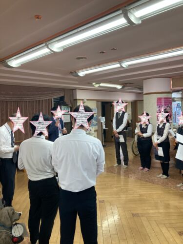 老健華通所リハビリです。 男性職員によるウォーターボーイズ演劇を開催いたしました。 まず初めに自己紹介、その後に準備体操を開始。 司会者はぴこぴこハンマーで突っ込み!! 職員は普段とは違う雰囲気で『学園天国』に合わせたダンスを・・・♪♪ 「楽しい…