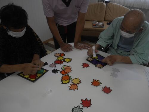 こんにちは。藤井病院療養病棟です。 紅葉が美しい季節になりましたね。 11月のレクリエーションは、そんな美しい紅葉の壁面飾りです。 好きな色の台紙にそれぞれ思い思いの紅葉の葉を貼れば完成です。 「どの色がいいかな?」 「この色が素敵やね」と会話し…