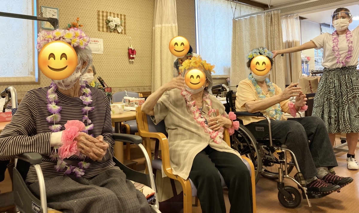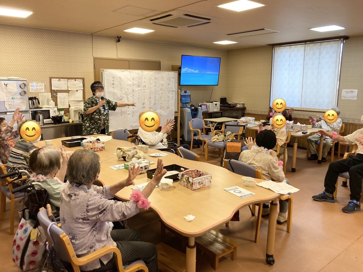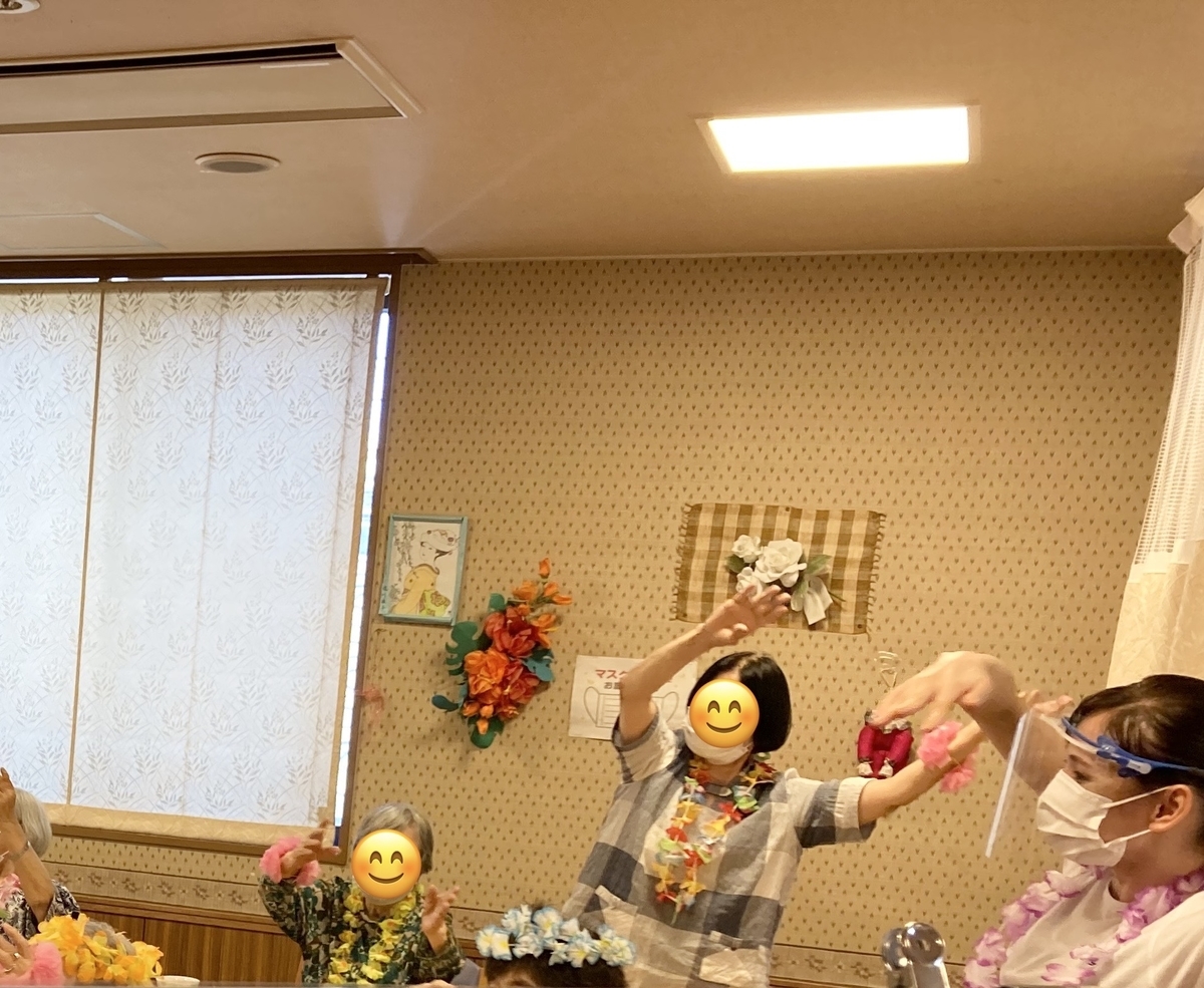 6/28(火)デイサービス蝶ちょでは機能訓練の一環としましてフラダンス教室を実施いたしました。スタッフの練習の甲斐があり利用者様の良い見本となり利用者様、職員共々楽しく、賑やかな時間を過ごすことができました🌟