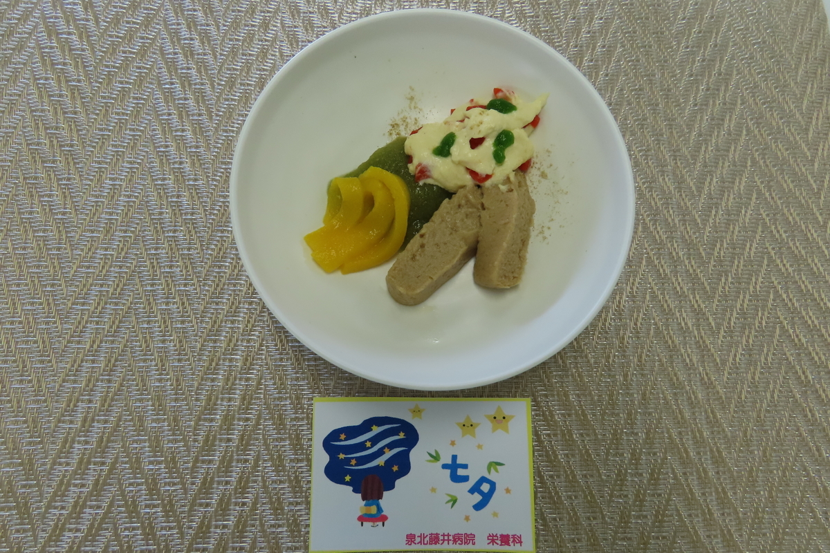 献立は「チキン南蛮」と七夕とは関係ない献立ですが、色どりを意識し作りました。