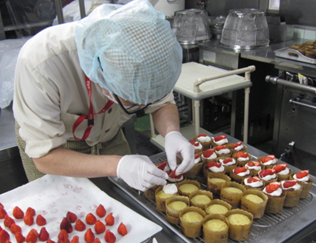 ケーキが食べにくい刻み食やペースト食の方には、ココアプリンを提供しました。