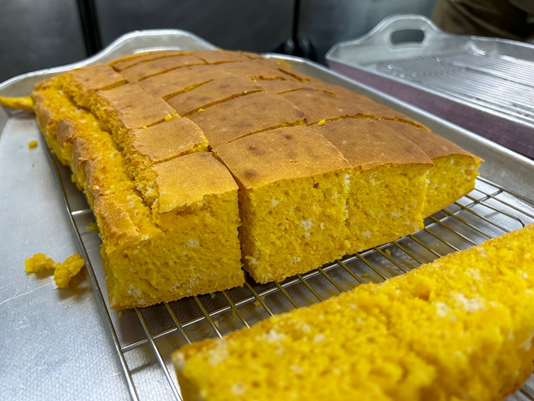 かぼちゃケーキの焼き上がりはこちら。ふわふわに焼き上がりました。