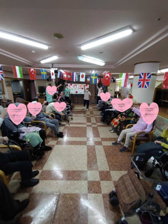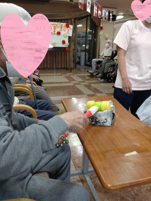 2023-12-04 秋の大運動会 イベント デイケア リハビリ 介護 楽しい 看護 老健 華 老健華 通所リハビリです。 秋の大運動会、はじめに皆様と国歌斉唱!! その後、「エイエイオー」と掛け声を・・・ 第1種目、スプーンリレー 隣の席へピンポン球運び・・・ 32個を次から次へと運び白組が勝ちました。 第2種目、紙風船叩きゲームを開始!! 1人1つずつ順番に叩いて、先に終了したチームが勝ちました。 その後、職員によるジャンプ競争しました。 負けず嫌いが発揮しました「もう一回!もう一回!」 と体力限界まで行ないました。 皆様「楽しかった☆」と喜んで頂きました。