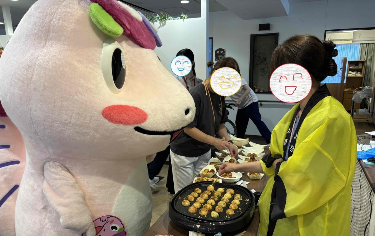 入所者様の目の前で焼いたので、フロアは粉もんのいい香りと、たこ焼きを焼いている音でいっぱいに!🎉